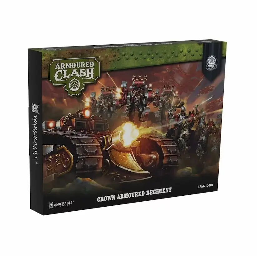 This Armoured Clash Regiment Box provides heavy reinforcements to your Crown Force! With multiple build options, this box is the perfect means of bringing the armoured might of Queen Victoria to bear upon Her enemies.Near-impenetrable Galahad tanks roll forward alongside towering Dragoons, an unstoppable bulwark of metal and firepower. And under the terrifying bombardments of Mordred and Bors artillery, noble Horse Guard Cavalry sweep across the battlefield, crushing infantry beneath their steel hooves, and claiming vital objectives in Her Majesty’s name.