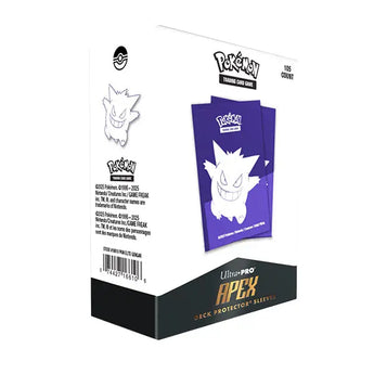 The 105ct APEX Deck Protector™ Sleeves for Pokémon TCG are made with our new easy-shuffle formulation and feature vibrant Gengar artwork on a textured back. Archival-safe polypropylene materials ensure you can sleeve your cards with confidence, and the gloss clear front allows your foil cards to shine! Sized for standard size trading cards measuring 2.5 in. x 3.5 in.