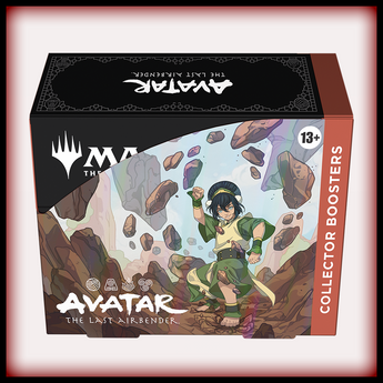 Discover wonders rivaling Wan Shi Tong's library with Magic: The Gathering | Avatar: The Last Airbender Collector Boosters! Each booster contains the quenchiest cards from all across the four nations, including rares and/or mythic rares, traditional foils, and a full-art basic land. You may also encounter source material cards and neon ink borderless battle pose cards that celebrate the show's iconic visuals. Plus, you can even hunt down and capture the Avatar himself: a raised foil Avatar Aang illustrated by show creator Bryan Konietzko!