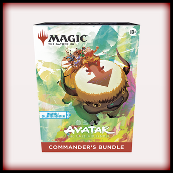 This masterful bundle unites all the greatest elements for Avatar: The Last Airbender fans, boasting nine Play Boosters, gorgeous full-art basic lands, and a Collector Booster packed with rares and/or mythic rares, foils, and other stylish surprises. But that's not all—Commander players will find Avatar-themed staples Sol Ring, Swiftfoot Boots, and Arcane Signet, plus two classic spells from a selected list of ten that are perfect for any commander's arsenal.