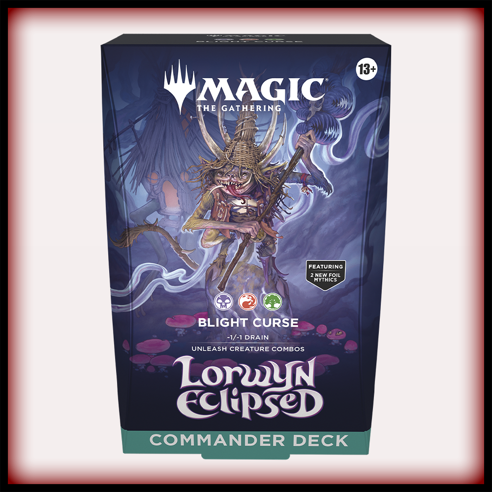 Commander decks are ready to play right out of the box and contain everything you need to play Magic's most popular multiplayer format. Lorwyn Eclipsed features two different Commander deck versions.