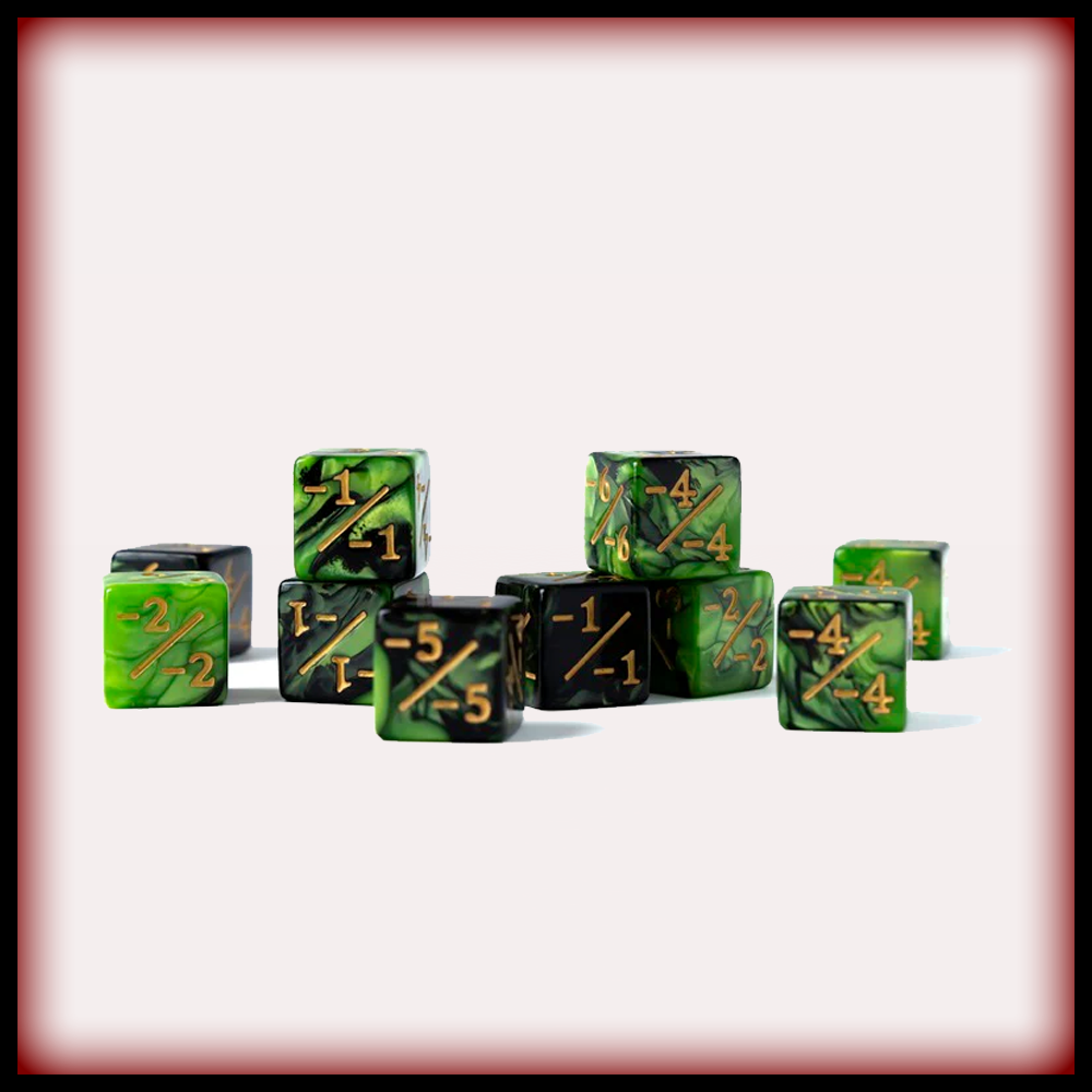 10 Piece Counter -1 Dice D6 - Acid - Minus