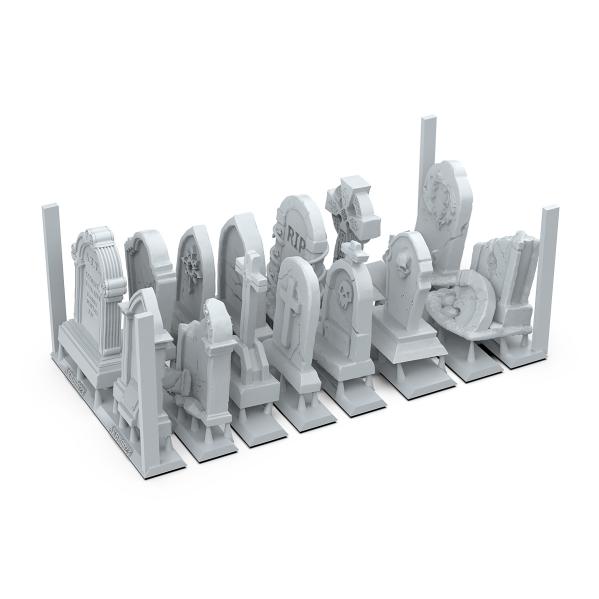 Somber, eternal 3D-printed tombstones, erected in honor of souls long gone, whose names have faded into the mists of oblivion. Each tombstone, carefully carved, emanates an aura of mystery and solemnity. Perfect for infusing your bases and scenes with a gloomy air, evoking ancient cemeteries where silence weighs heavy.