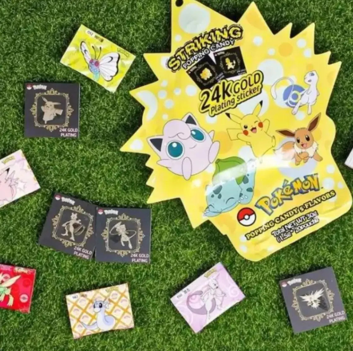 - Contents: (1) pack, 30g popping candies + (1) 24k gold Pokemon sticker