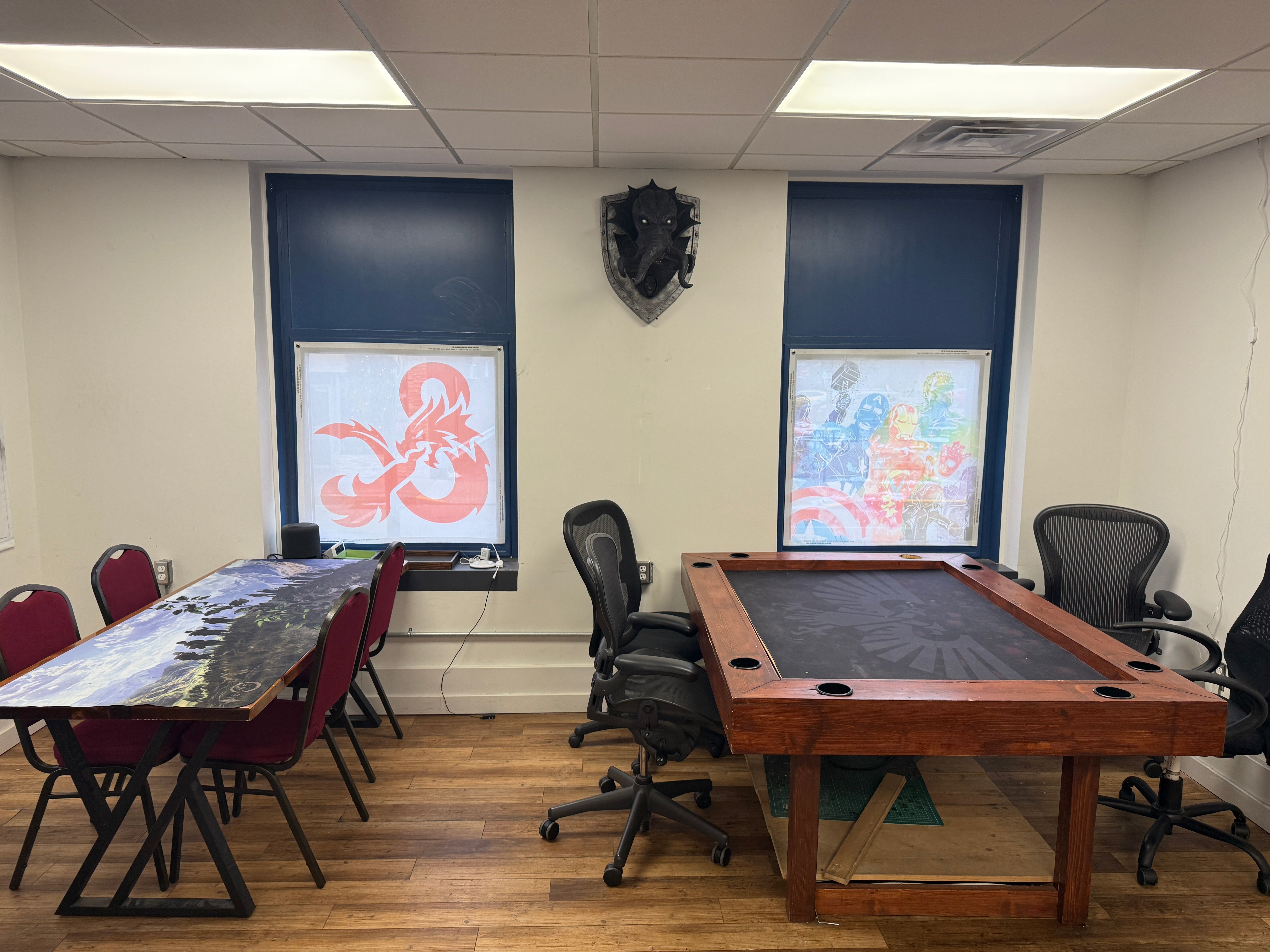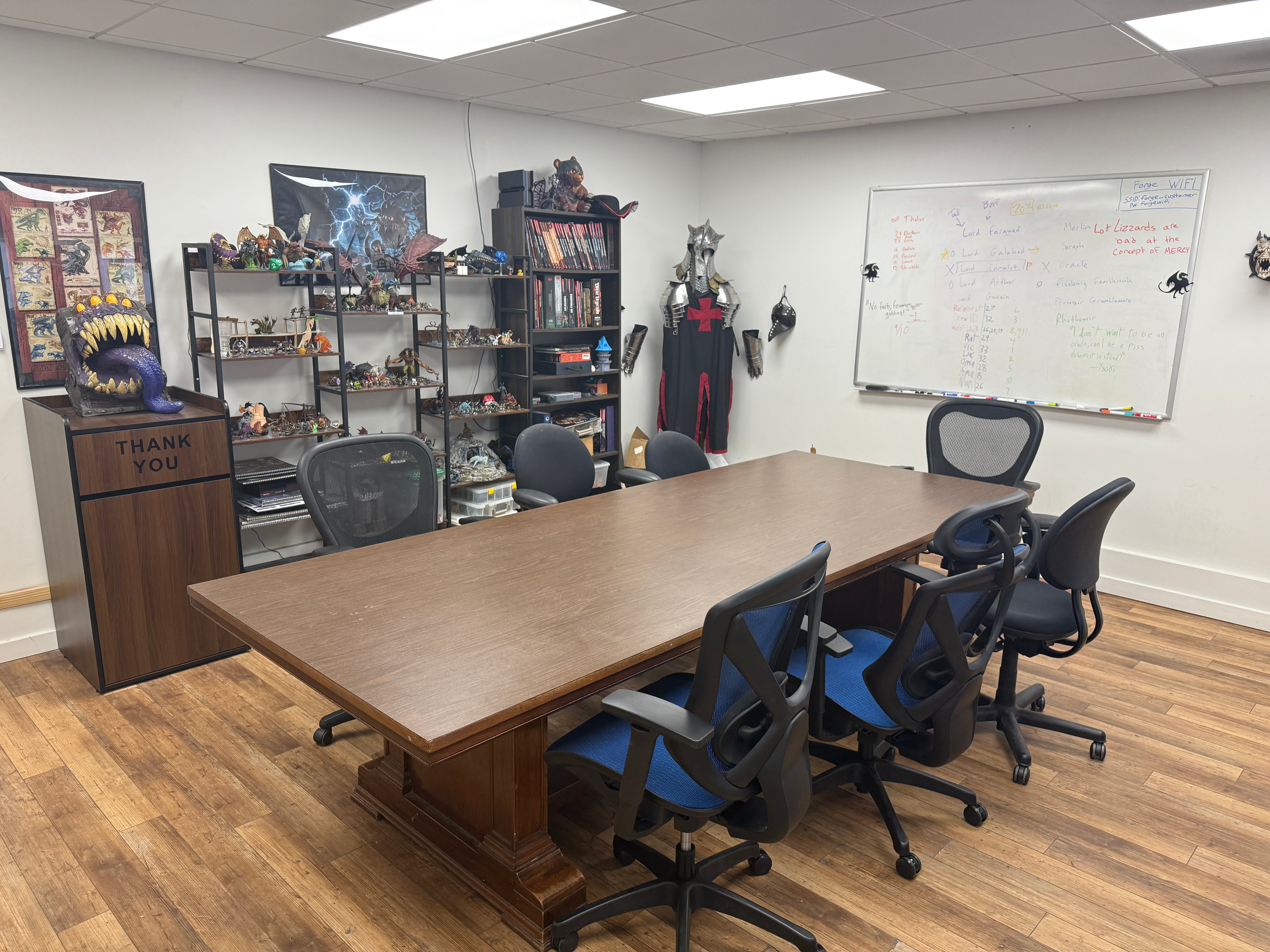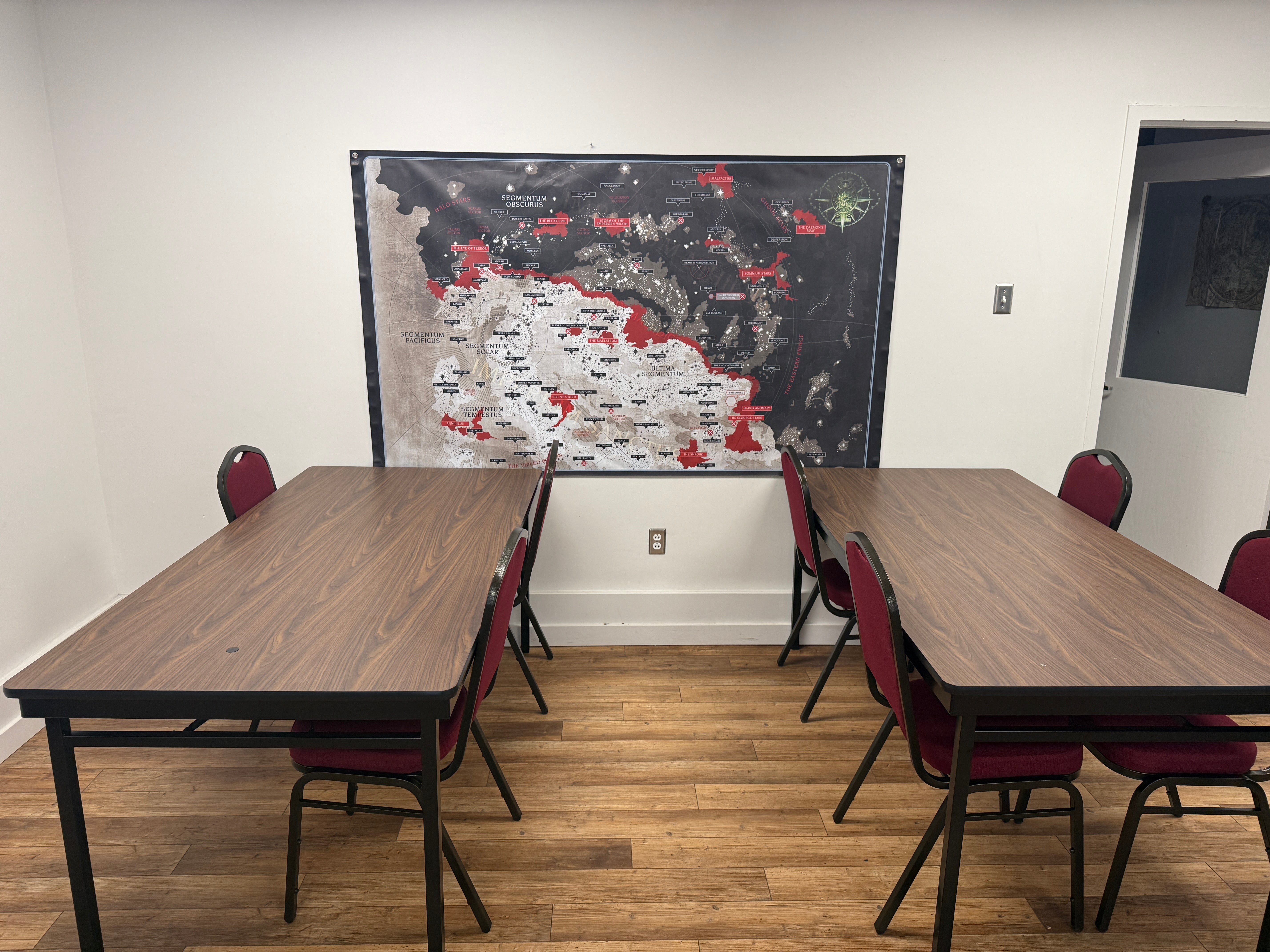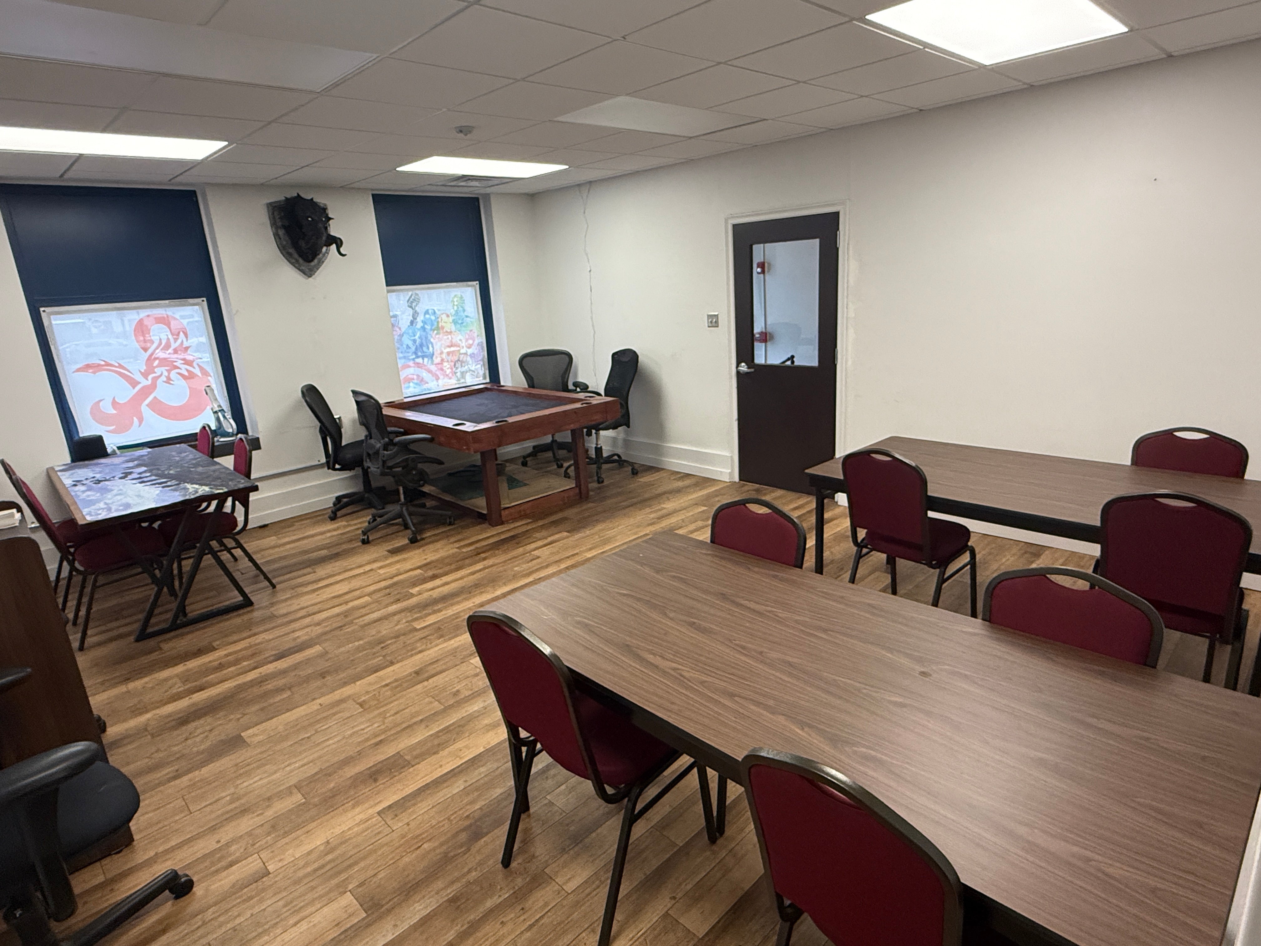 Game Room 2 is primarily for Roleplaying groups but can also be used for larger board game sessions, birthday parties and Miniature Games that have 4 or more players.