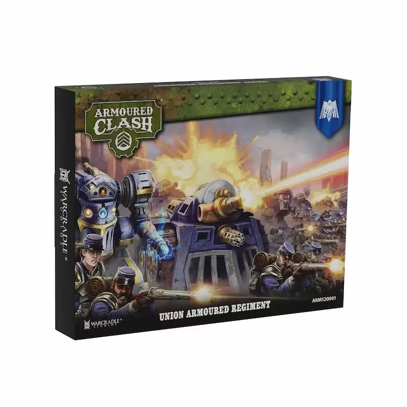 This Armoured Clash Armoured Regiment box allows you to add more mechanised Units to your Union force. Rolling Thunder Main Battle Tanks are versatile heavy units that are manoeuvrable when on the offence. UR-45 Heavy Mechs are perfect for supporting your more fragile infantry units, laying down withering fire from their gatling guns and crushing any target with their assault claws. UR-31E Iron Eagle Cavalry are difficult to shift thanks to their armour plating and automata fearlessness. These are all supported by reliable Armstrong Heavy Artillery, firing shells capable of making holes in the toughest of targets.