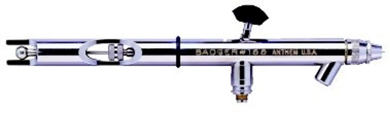 The Anthem, Model 155, is the most comfortable, reliable, proficient, cost effective, user friendly airbrush ever. The two angle needle tip precisely mates with the Anthem's cone shaped nozzle enabling a single needle/nozzle configuration to spray virtually any desired material, thus eliminating the need for fine, medium, or large needle/nozzle variations. The Anthem's body design provides exacting balance and long term user comfort. The Anthem also provides flawless performance in the most rigorous of production airbrushing environments. FEATURES: Single needle/nozzle for spraying all mediums, inks, dyes, watercolors, acrylics, enamels, lacquers, glazes, latex, Air-Opaque, Air-Tex, MODELflex Totally Tattoo and Totally Tan colors Single needle/nozzle sprays pencil lines to 3" (76mm) spray pattern Minimal spare parts to stock Easy maintenance and cleaning Fastest needle release on the market Finger tight assembly tolerances Excellent for multiple applications for novice to advanced airbrushers Comes with a comfortable, adjustable trigger cushion Lifetime warranty on labor and PTFE seals Fine replacement parts now available