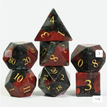 Bloodstone - Gemstone Engraved with Gold RPG Dice Set