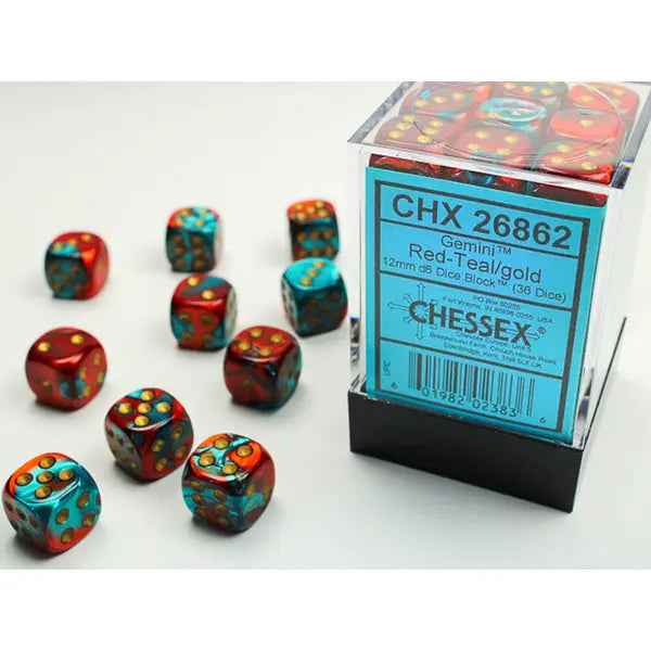 Each Set contains 36 Gemini 12mm d6 dice in 02804 Display Case w/Lid