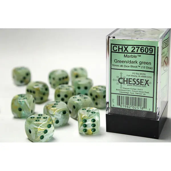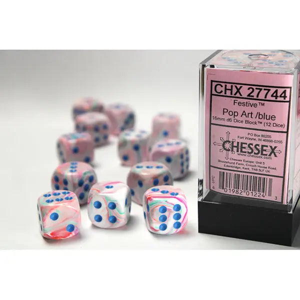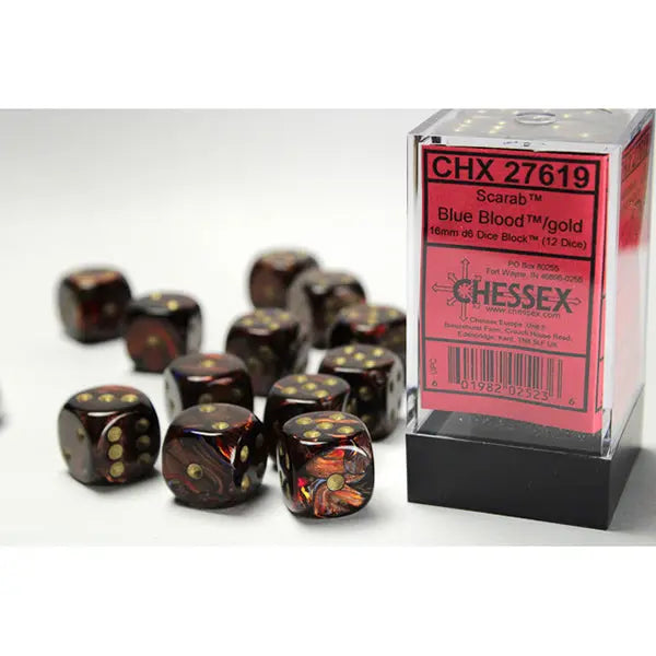 Each set contains 12 16mm d6 dice with Display Case w/Lid and Foam Square