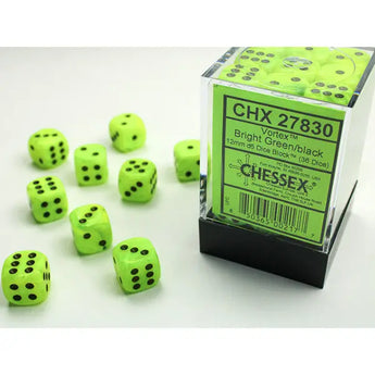 Each set contains 36 Vortex 12mm d6 dice with Display Case w/Lid and Foam Square