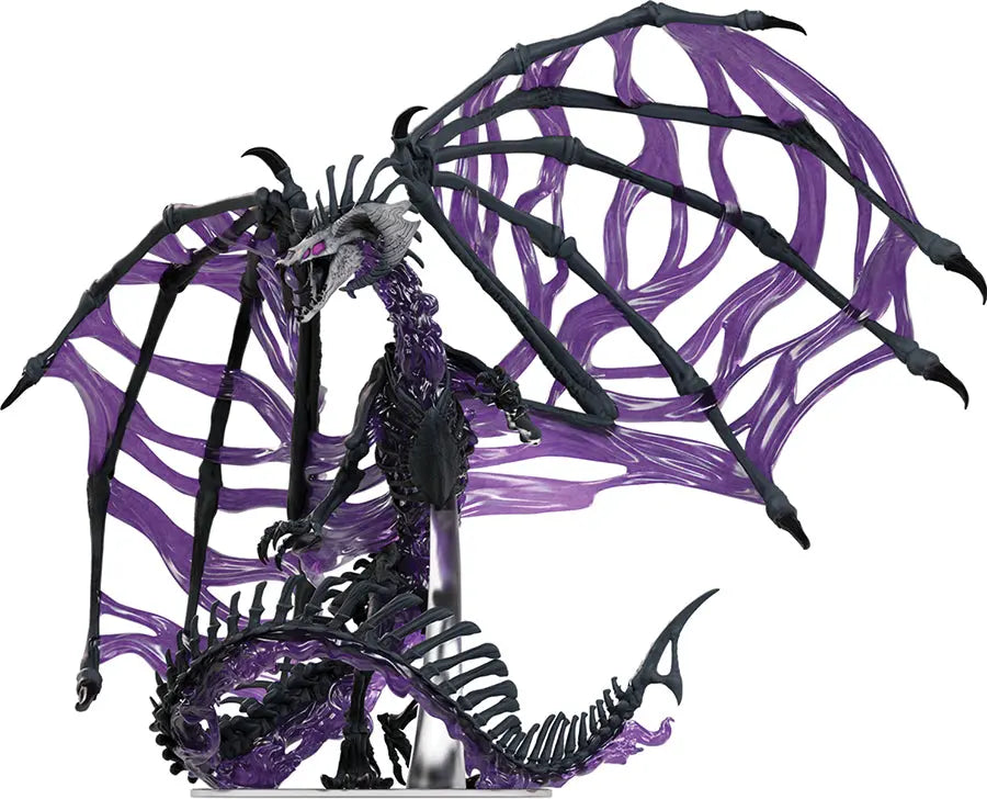 Some dragons are not content with the power they have in their long lives and look for ways to extend it. The most narcissistic may turn toward undeath to preserve their power, becoming powerful Dracoliches. The D&D Icons of the Realms: Black Dracolich Boxed Miniature is a Gargantuan-sized prepainted Dungeons & Dragons miniature on a 100mm clear plastic base. Utilizing haunting purple translucent materials and standing 10 inches tall, this undead dragon mini makes for a great campaign antagonist or frightening addition to your collection.This Black Dracolich miniature also comes in an unpainted version! Find it here: D&D Nolzur`s Marvelous Miniatures: Black Dracolich Boxed Miniature. Features: Prepainted, fully assembled, and ready to play out of the box! Gargantuan-sized miniature on a 100mm clear base. Images not final.
