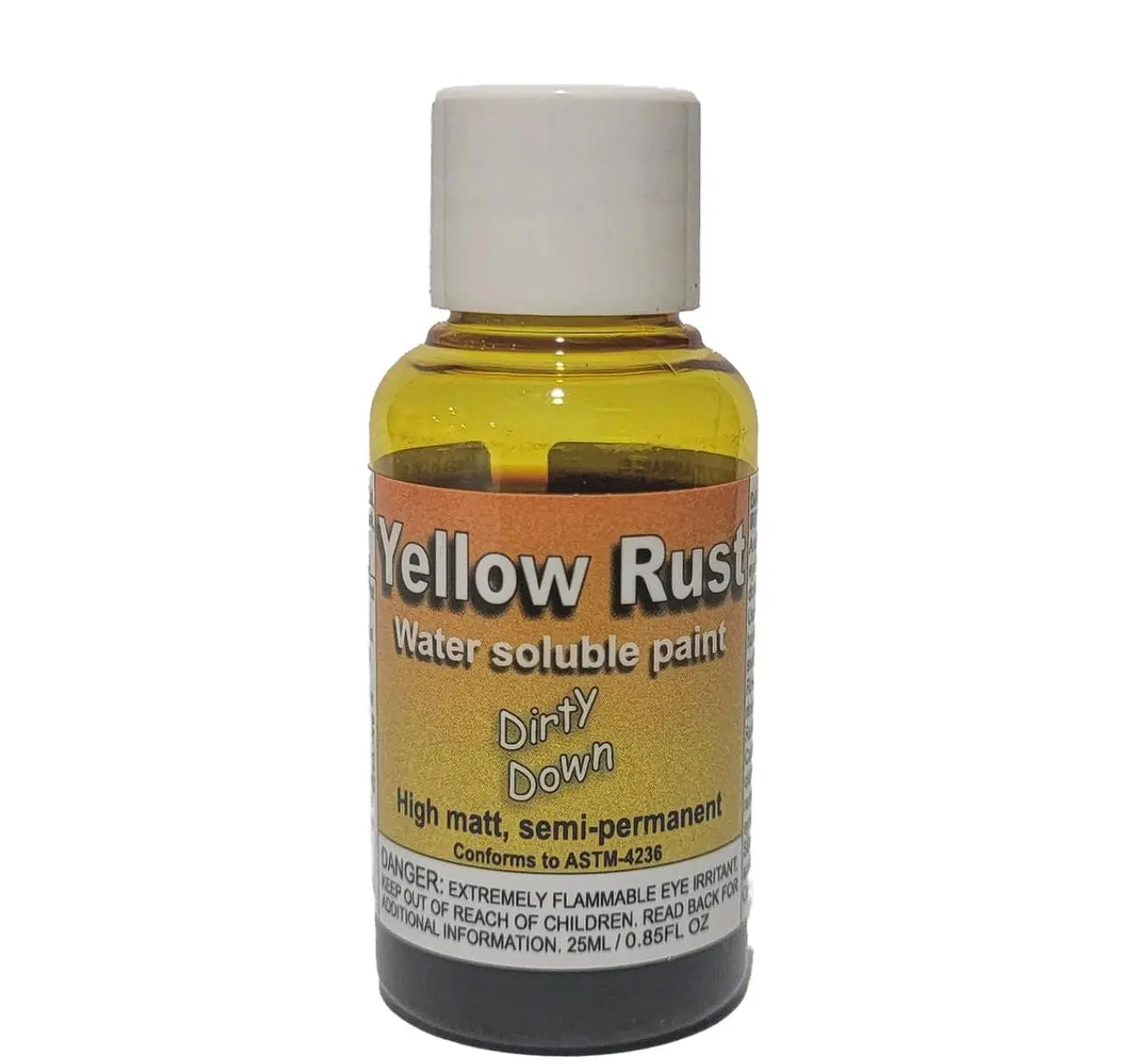 High matt yellow rust paint that simulates atmospheric oxidization of aged metals. Water soluble to easily tone back effects for the perfect result.