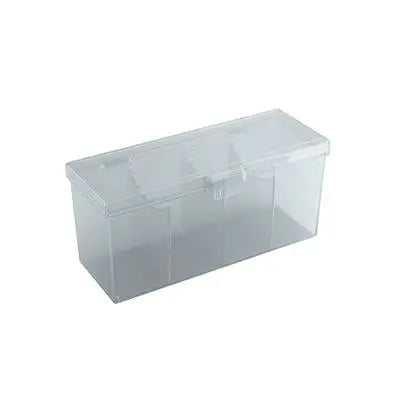 Full decks, dice, tokens or 320 double-sleeved cards: there is a lot that the Fourtress can hold and protect! This sturdy box is available in 5 different semi-transparent colors, allowing its contents to be easily identified. The integrated lock keeps it safely closed, while two inner walls can be removed to create bigger compartments. The boxes are stackable, so they are both perfect travel companions and a great storage solution at home.