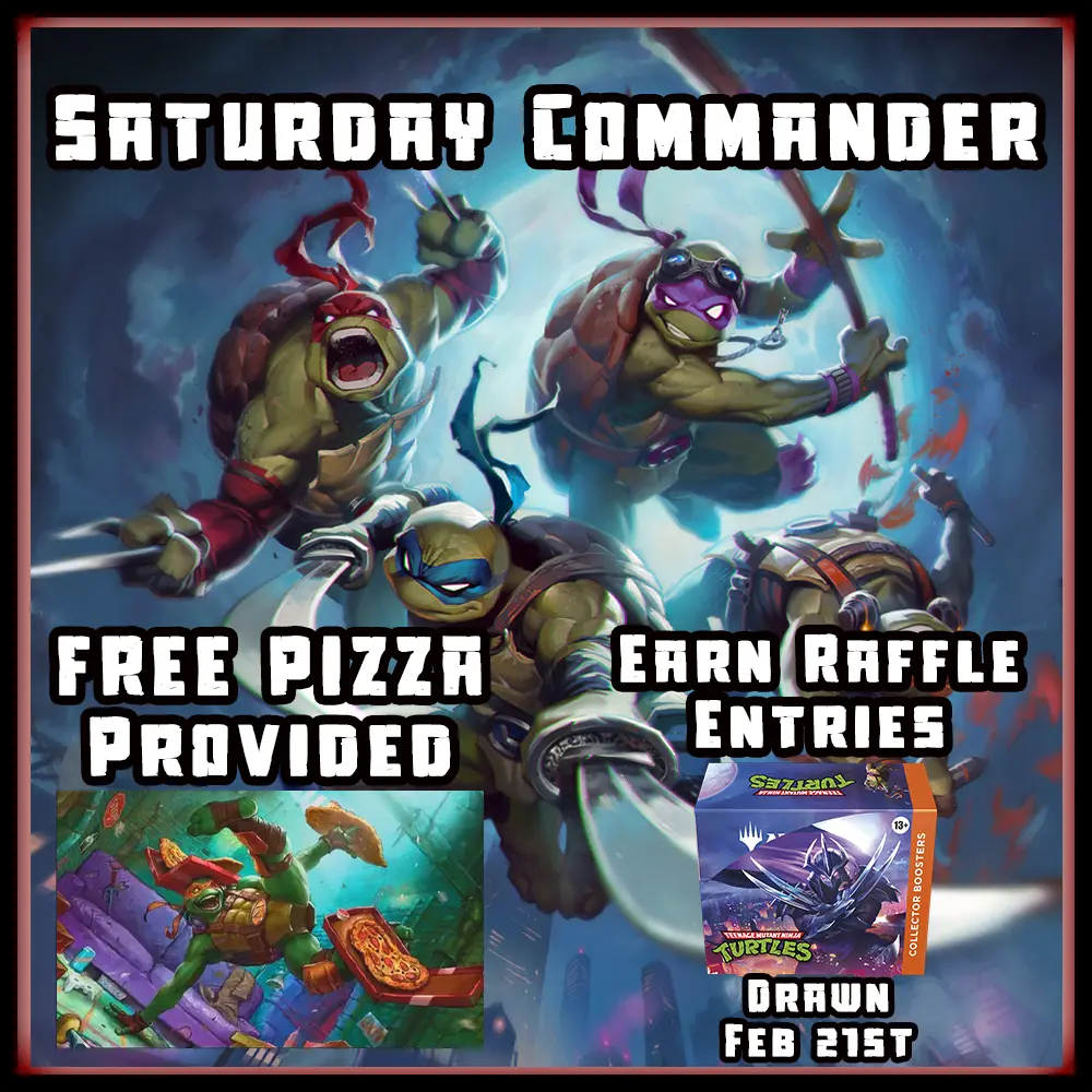 EACH Commander Saturday you attend will get you 1 entry into a raffle to win a TMNT Collectors Box (More than 1 box might be raffled depending on overall # of people
