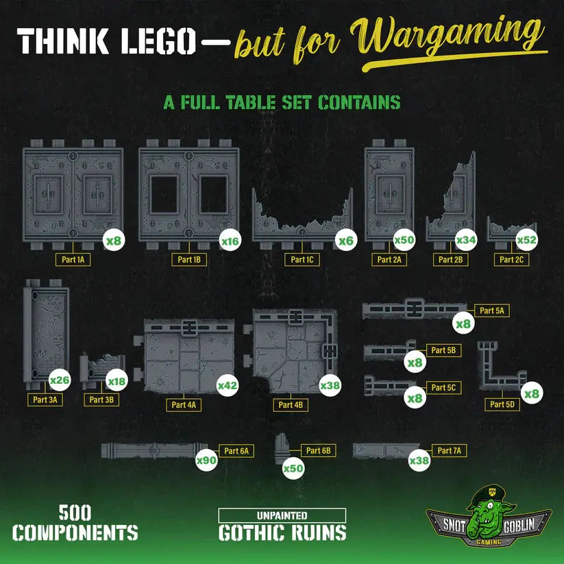 The Full Table Set contains enough Core Components to build a full 60×44″ table of terrain to Games Workshop suggested density/layouts