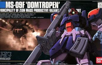 Based on Mobile Suit Gundam 0083: Stardust Memory, the MS-09F Dom Tropen model kit is in 1/144 scale and becomes a fully articulated figure once complete. The MS-09F Dom Tropen includes a beam saber and hyper bazooka with extra clip.