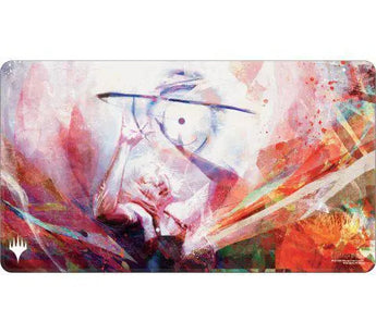 Holofoil Playmats featuring popular Magic: The Gathering artwork printed on a shimmering material with stitched edges. Made with a soft fabric top to reduce damage to cards during play and a non-slip rubber backing to keep the playmat from shifting during use, playmats enhance the gameplay experience. With dimensions of approximately 24 in. x 13.5 in., a playmat also makes an excellent oversize mousepad for home or office.