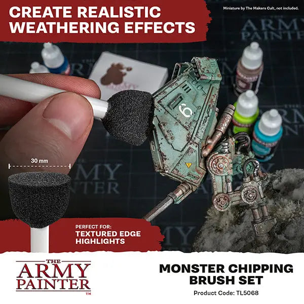 These monster-sized brushes are designed for precision and control, making it easy to create realistic chips, scratches, and worn finishes, to any terrain piece or large miniature.