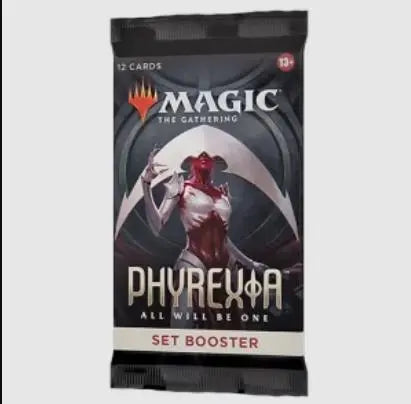 Each Phyrexia: All Will Be One Set Booster contains 12 Magic cards, 1 Art Card, and 1 token/ad card or card from “The List” (a special card from Magic's history or Universes Within card—found in 25% of packs).