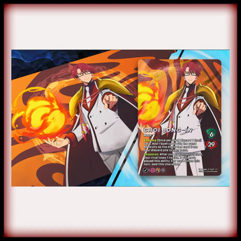 The Solo Leveling S-Rank Hunter Bundle – Choi Jong-In showcases Korea’s top mage in bold, fiery style. Featuring exclusive Solo Leveling artwork, this UniVersus Experience Bundle pairs a collectible foil character card with a premium full-art playmat that radiates elemental power and tactical precision.