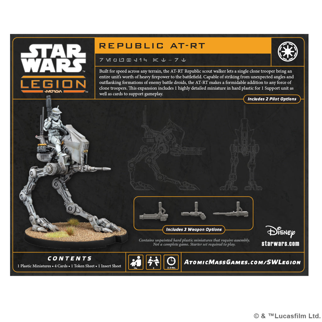 This expansion contains 1 AT-RT miniature, enough for one support unit in a Galactic Republic army.